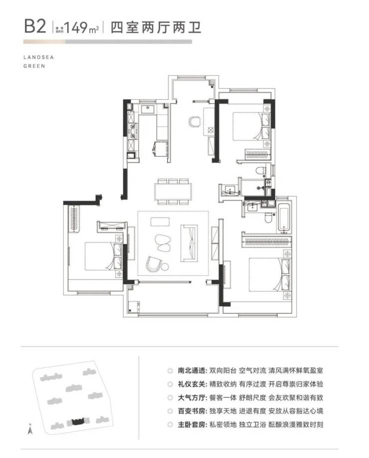 建面约123-216㎡精装科技华宅,于全球范围内甄选高品质精装品牌,同时围绕“恒温,恒湿,恒氧,低噪,适光”五大健康理念,以十大核心科技系统为辅,为居者打造最前沿的舒适智慧家。