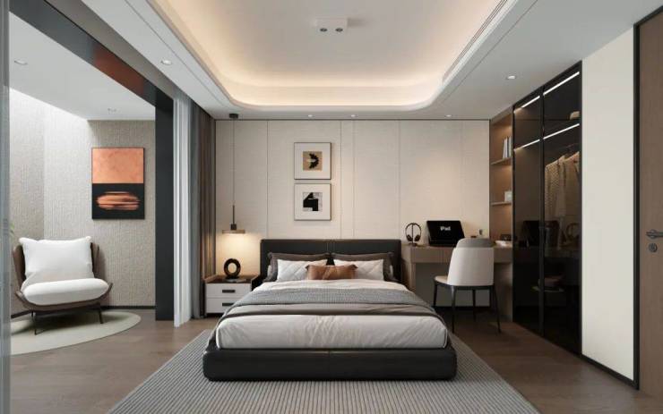 专设静谧客房空间,供亲友留宿休憩。私密区域分隔生活动线,既保障主人日常起居的从容,又为宾客提供自在安心的休憩体验,宾主皆宜,尽显周到关怀。