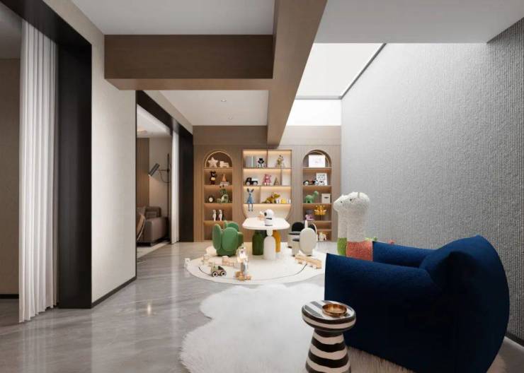 阔绰空间,装下孩子的各类玩具、书籍,打造成儿童乐园,不用担心打扰邻里,孩子可随意跑跳、放声欢笑,于此快乐成长。