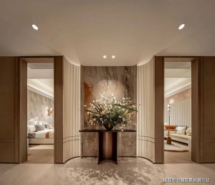 相信我,看到这玄关的第一眼,你会有置身于建面约200㎡+豪宅的感觉。十字动线+女王玄关,彰显豪宅尊贵,又巧分动静,私密的休憩区和开阔的社交场域完美规划。