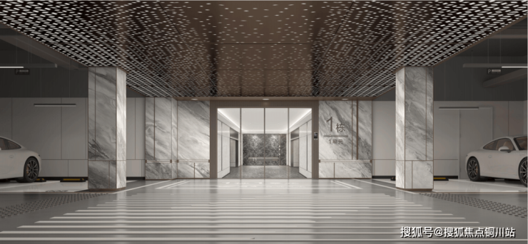 我们再来看,车库做了星空顶,地上地下双大堂按照奢华酒店风精装,甚至园林也是参照奢华酒店设计,一股浓郁的奢适之气扑面而来……