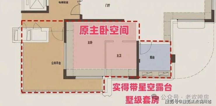 主卧的星空露台则借助公共平台区域拓展而来,这两处累计拓展约40㎡的使用空间,相当于额外赠送一间套房!