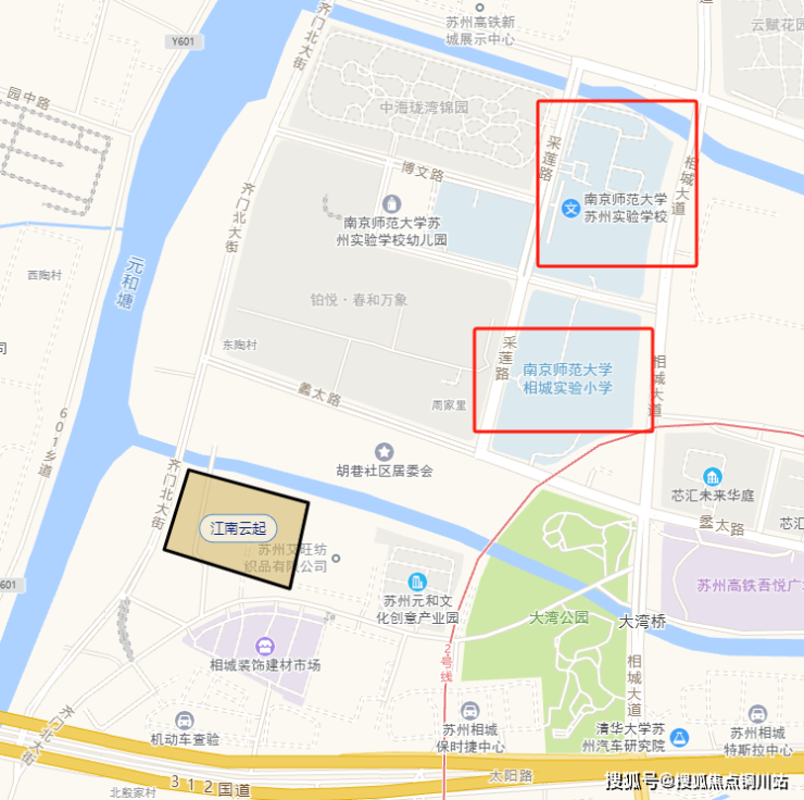 不远处就是南师大相城实验小学(公办)和南师大苏州实验学校(民办),2022年就传出消息拟转公,但是目前还没有正式官宣。项目教育资源并不明朗,需要看最后教育部门的划分。