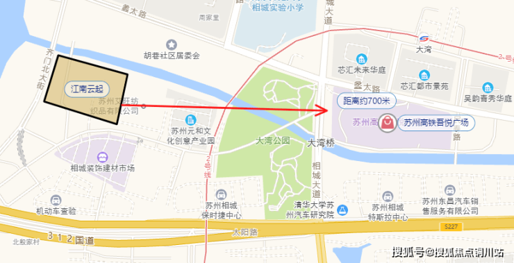 项目位于高铁新城西南部,一路之隔就是太阳路高架,周边主要是汽车相关产业,相城国际汽车城隔河向往。