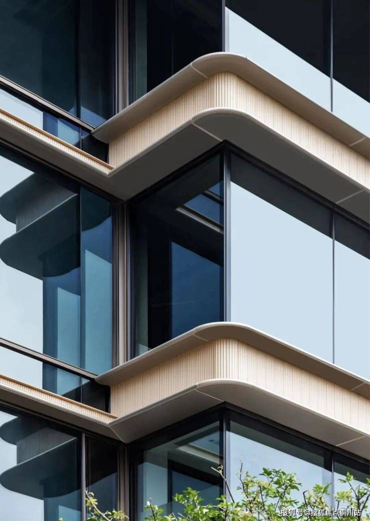 取意宁波7000年陶瓷文化,特邀青瓷非遗传承人全程指导,历经数百次烧制打样,复刻伦敦Principal Tower金釉陶板立面。每一块皆由匠人手工打造,镌刻历久弥新的立面质感。以苹果旗舰店同款“无立柱玻璃幕墙”工艺,打造“冰川瀑布屏”,270°环幕,城市繁华与湖光尽收眼底。