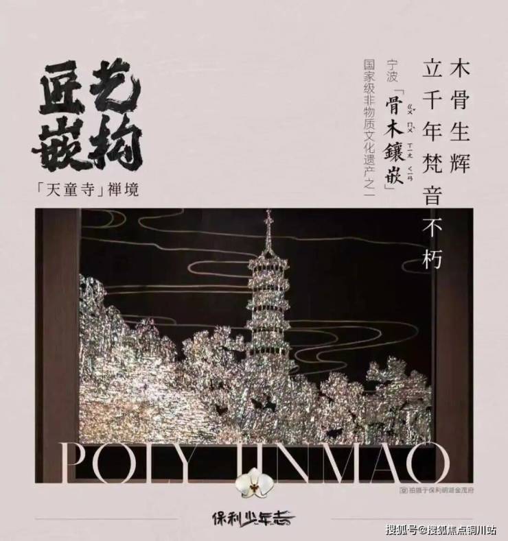 保利明湖金茂府,提取宝奎巷、郑氏十七房、莲桥第等千年世家府宅的明州韵基因,以“东韵西境”的设计理念,结合宁波非物质遗产技艺,把在地性文化与当代艺术相糅合,塑造了一处城市中的精神高地。