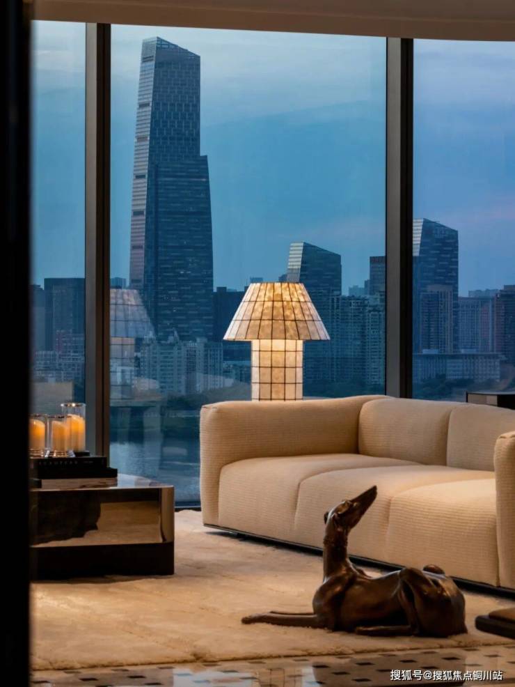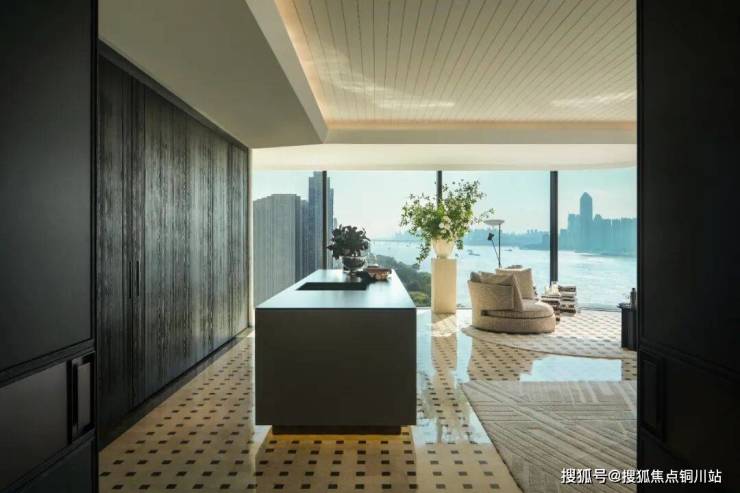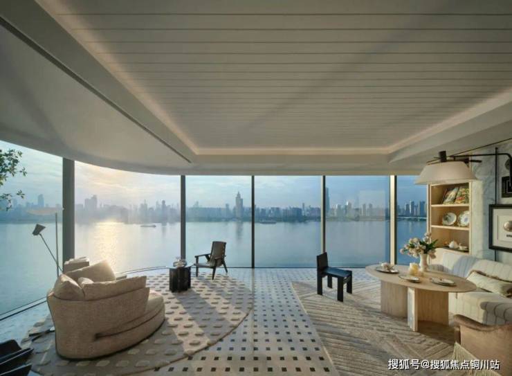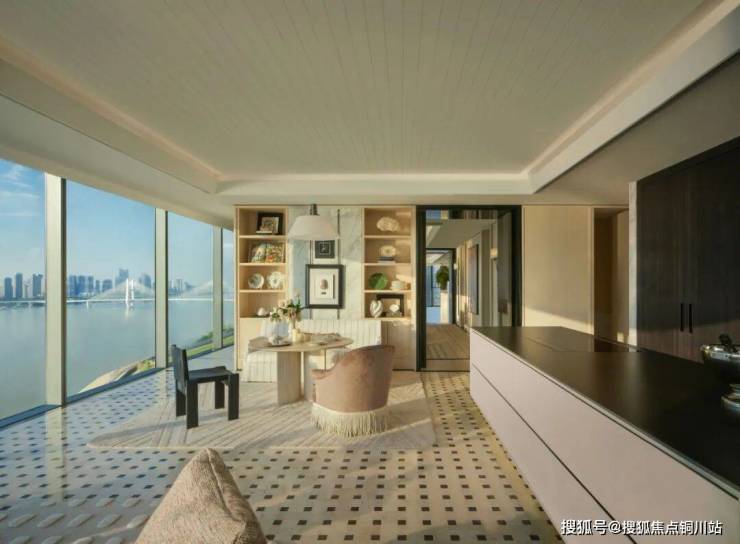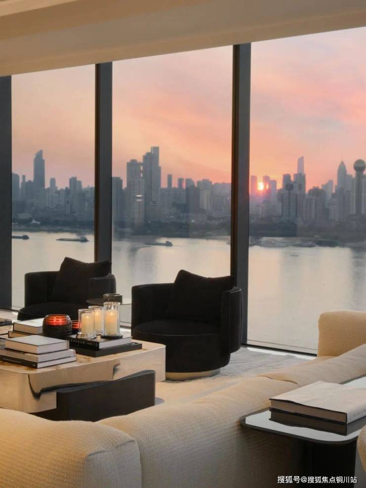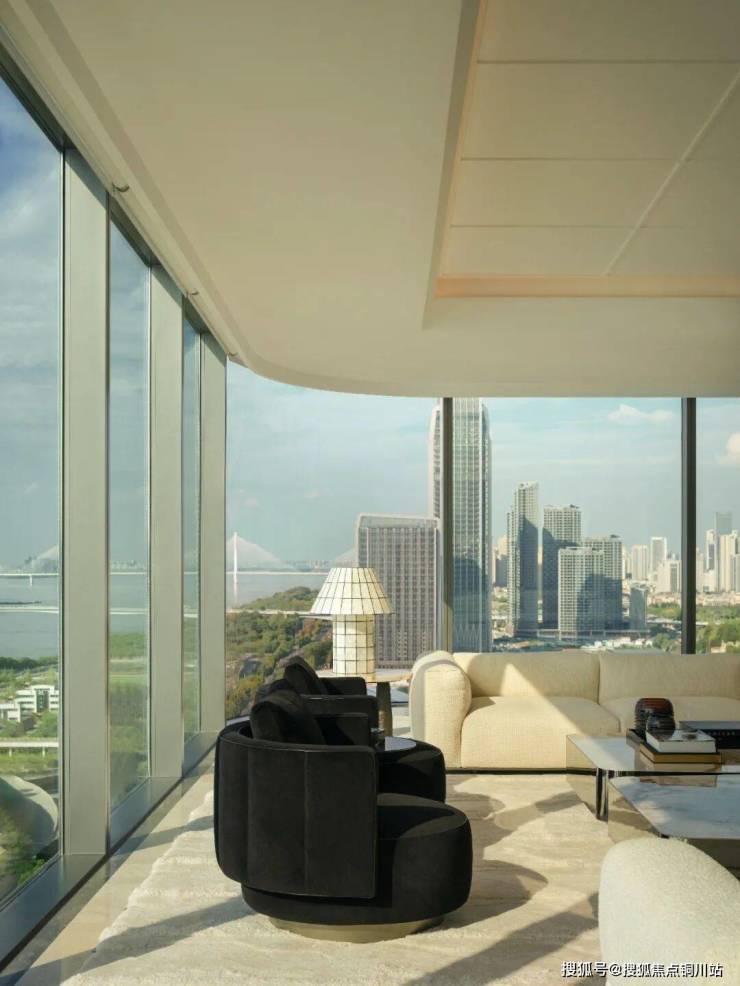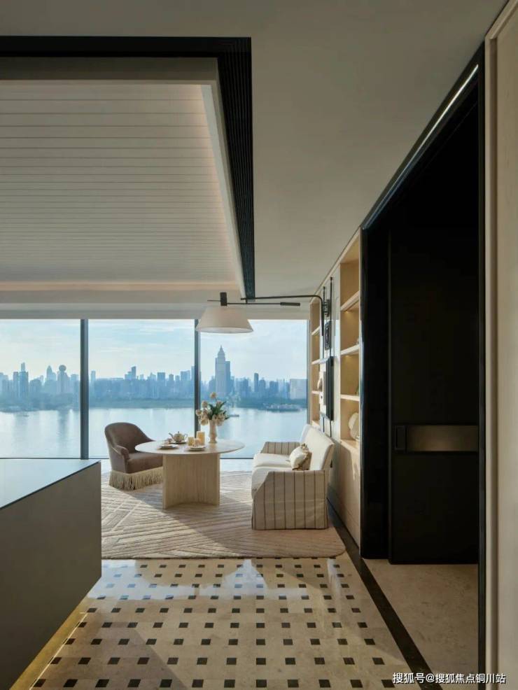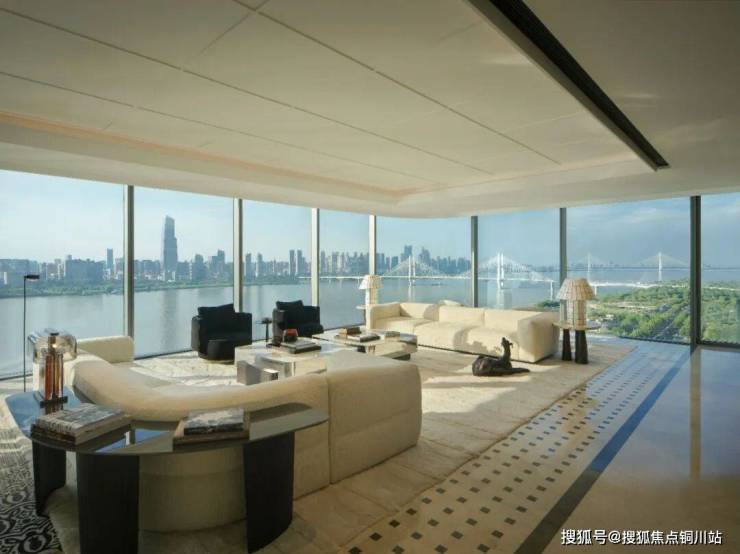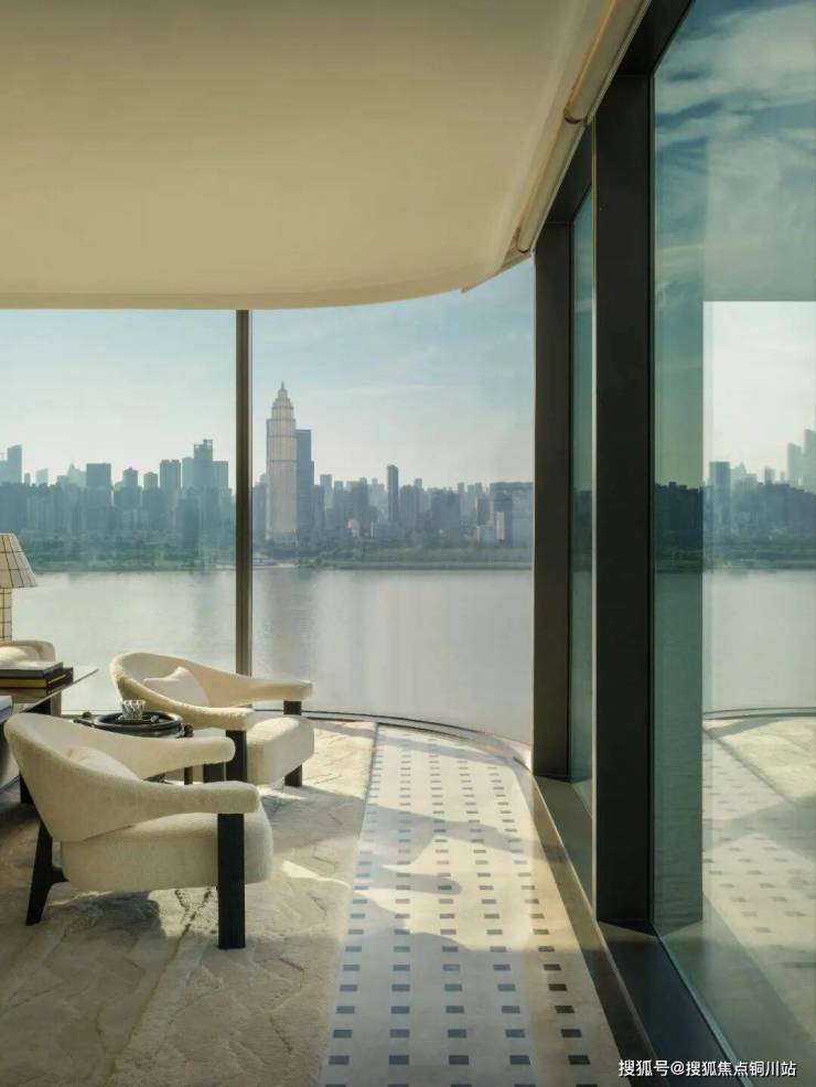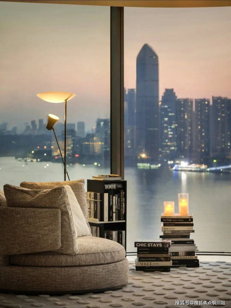 若落座于弧形转角窗前,圆形榻适合小憩,白色长江大桥与船只,将岁月潮歌编织成生活的当下。