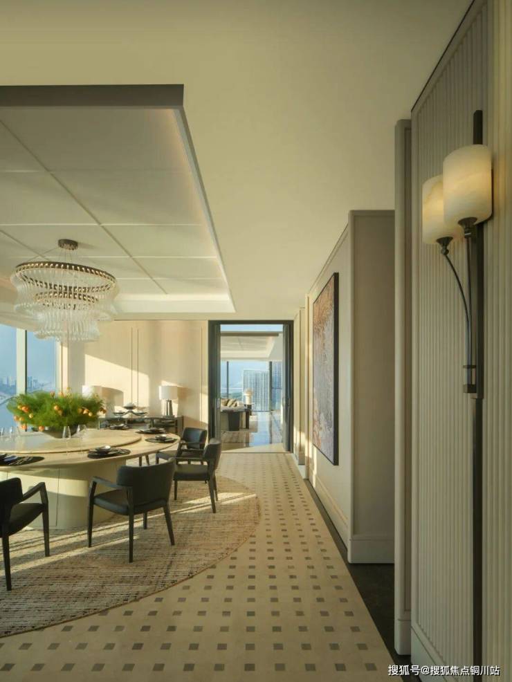 于是,从会客厅的阔朗,到餐厅的温情,家的公共社交区域构成了一个家族精神坐标,让每一次相聚,都成为与江、与城、与时光共鸣的永恒瞬间。