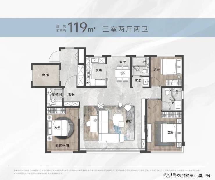若说进阶改善家庭的首选项,那一定是海信金沙滩约119㎡的套三双卫全明户型,其在舒适度、功能性与性价比之间找到了最佳点,是市场上同级产品的绝佳理想版本。