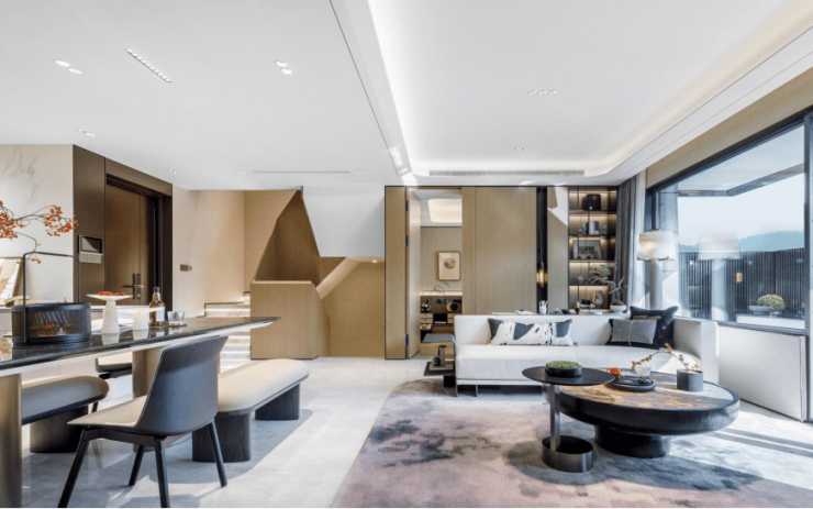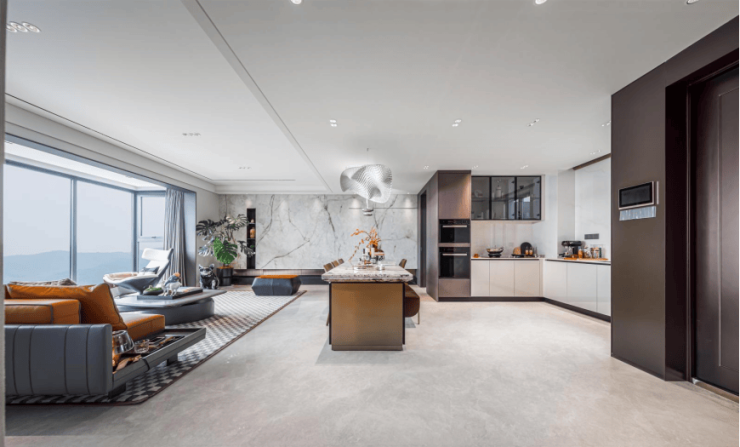 约6.9米墅级横厅,全景式IMAX宽境,营造出家居交流和社交空间的奢阔尺度感