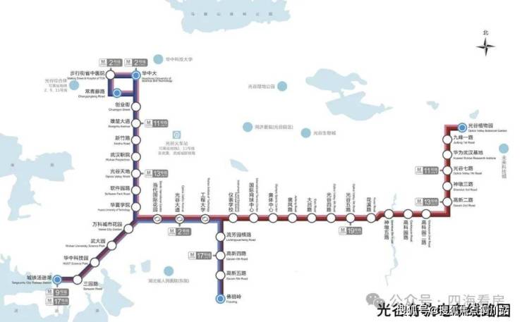 三横三纵,纵向串联光谷金融港、软件园和光谷老城区;横向连接武昌、汉口等核芯地区及光谷东。项目临地铁2号线佛祖岭站和L1有轨电车高新五路站,可通达全城,交通便利。