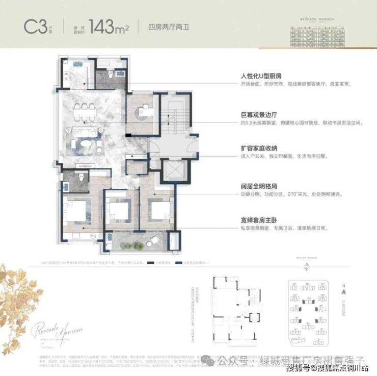 【总户数】:9幢洋房,5幢高层,共689户