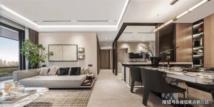 保利荷雨瑧悦双大堂:一楼双层挑空。负一楼岩板背景墙。