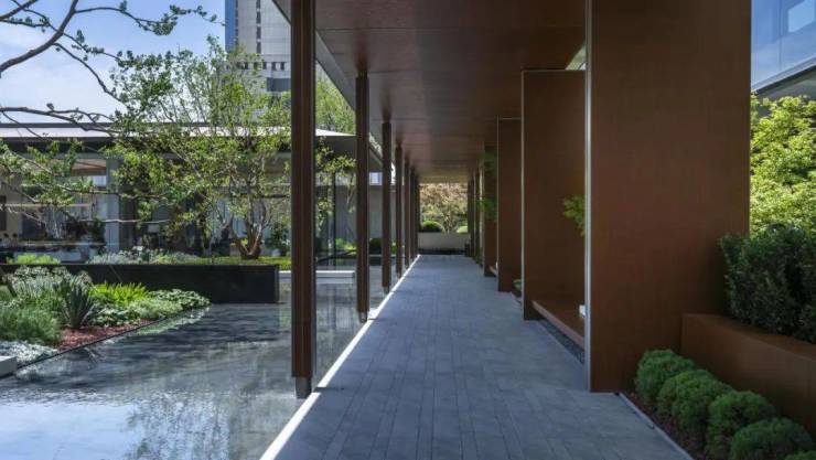 楼栋之间的串联有风雨连廊,避雨防晒。