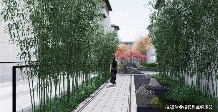 墅区采用街巷式聚落布局,实现了从公共空间到私密领域的有序过渡,以低密产品,形成“宅中有园,园中有屋,屋中有庭,庭外为坊,坊间成园”的五重归家院境。