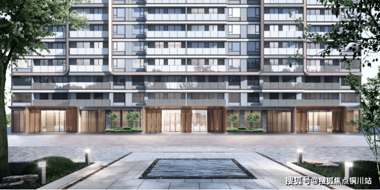 项目规划三重尊崇归家动线,“一进-礼遇”,打造近20米宽的主题水景,大量采用孔雀绿石玻璃及黑金沙进行点缀,雕塑形态取自蜿蜒江流;“二进-府门”,宽近36米,高近10米的高阔府门采用爱马仕灰石材及香槟金铝板材料定制雕琢小区入户,大门正中以现代的渐变格栅塑造障景,两侧真石材墙面结合精致的水景喷泉,正中栽植臻贵造型罗汉松,营造尊贵的归家迎宾体验;“三进-沐林院”,开阔的沐林水院,水域面积超600㎡,涌泉跌水、石台花境等层次丰富的水景,予以身心松弛感。