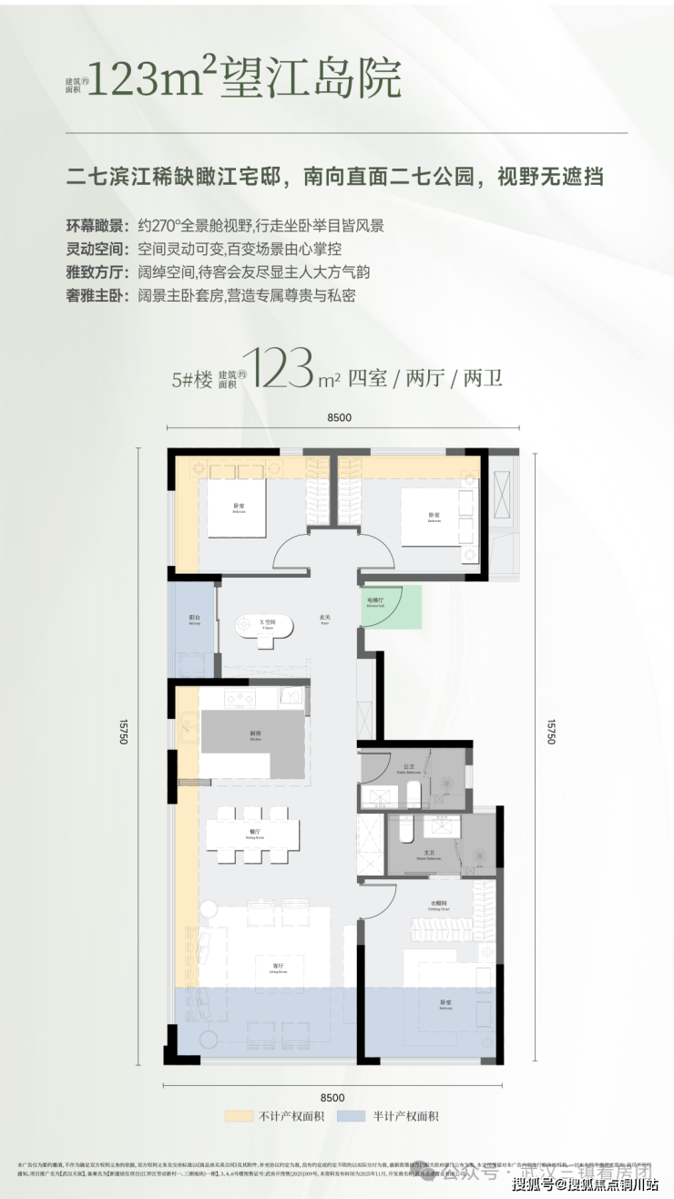 •建面约123m²天空岛院——离天空更近,离繁华不远,二七滨江只此高得房率四房