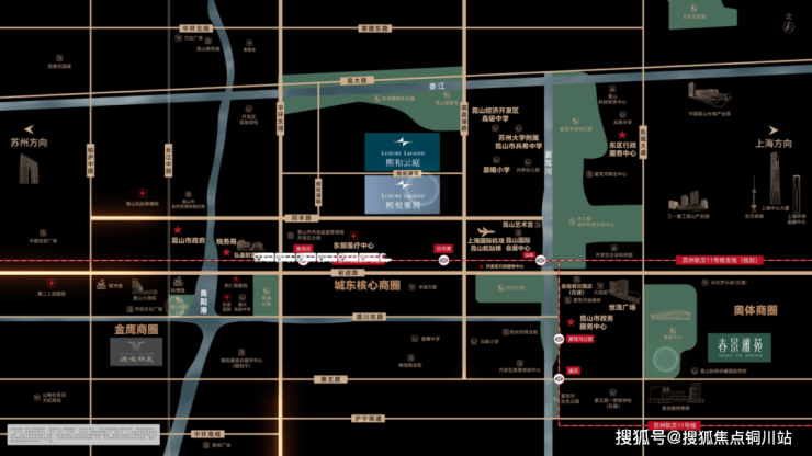 熙和云庭占位昆山开发区价值地段,汇聚政务、枢纽、商业、文体、生态、康体、教育七大地标群。