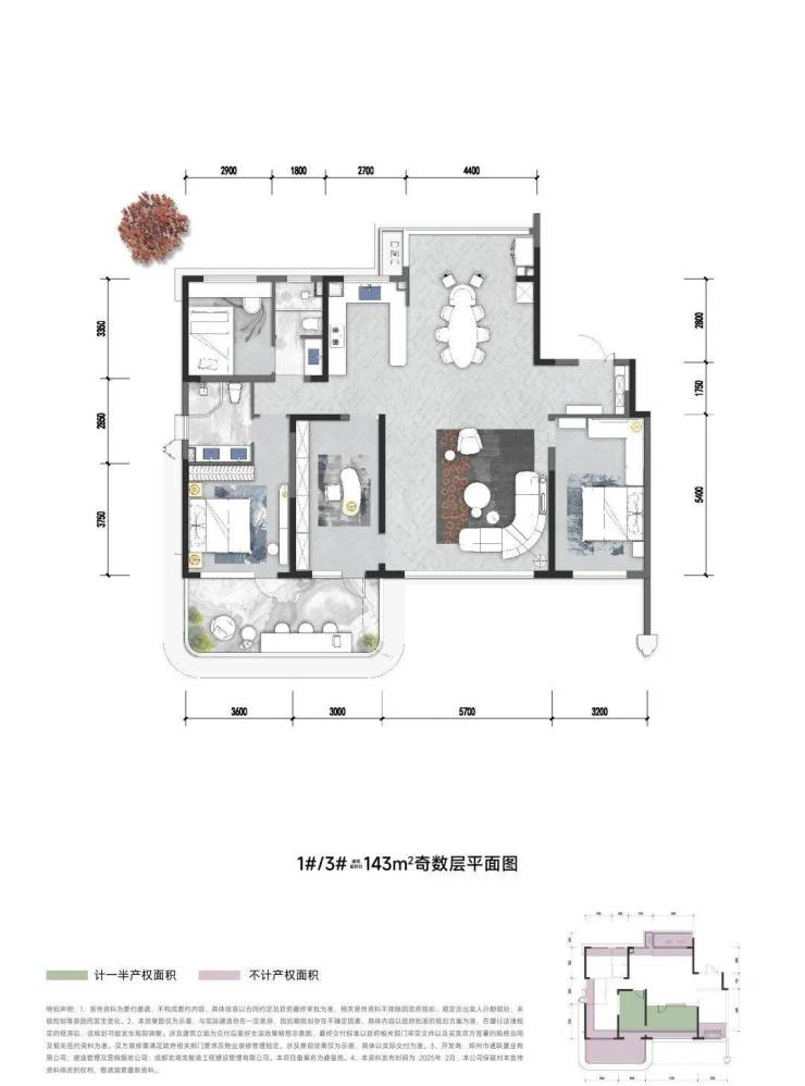 中原颂户型面积段很纯粹,全部四房设计,建面约129㎡和143㎡。129㎡四房得房率105%,套内面积134㎡,相当于市面上常见的建面179㎡的使用空间。建面143㎡的四房,得房率更高,115%,套内面积165㎡,相当于市面上建面220㎡的空间。
