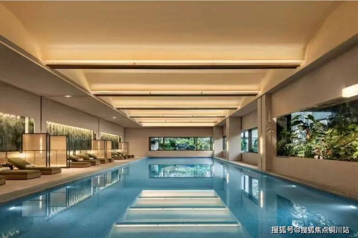 地下会所内的颜值超高的恒温泳池,抬头是波浪型穹顶,低头则是马赛克铺贴的《水中的宝玉》。