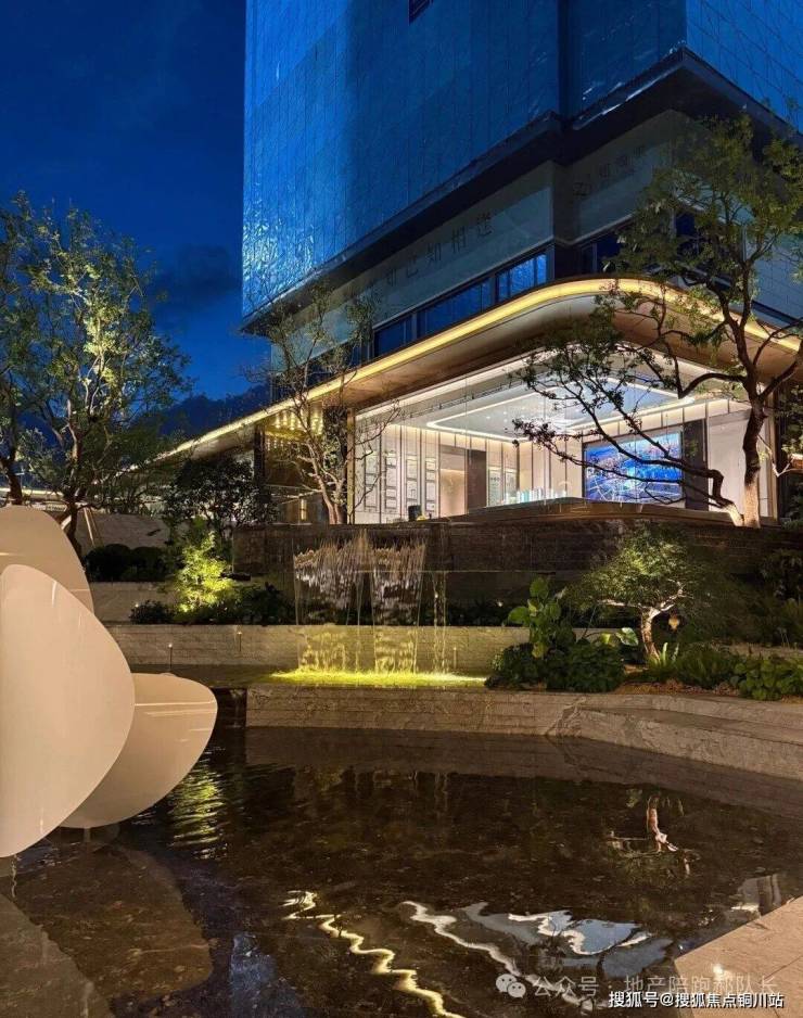 步入门庭,立体山水庭院「知・流霞」如画卷般骤然铺展,依托约3.2米的抬地高差,逐级而上。空中悬浮的「知・印月」浮岛客厅,轻巧地倒影在波光粼粼的潋滟汐庭之中,与前厅交相辉映,营造出光影交织的对话空间,让每一次的相遇都在自然中绽放。