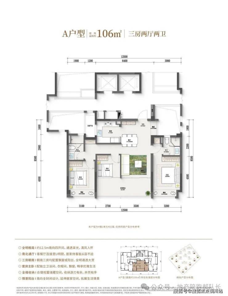 106平方米户型:打造舒适三居室,含两厅及独立双卫,四开间朝南设计,餐客厅无缝衔接,配备全景独立双阳台,实现全明卫生间,彰显生活品质。