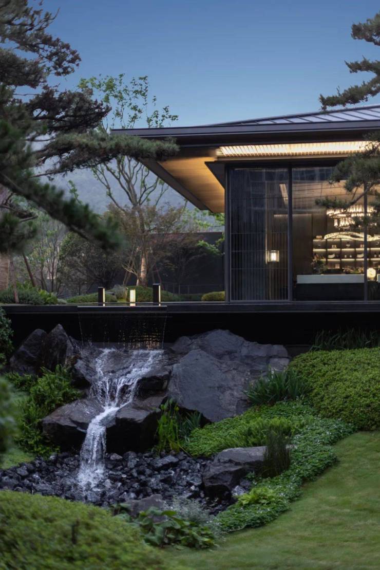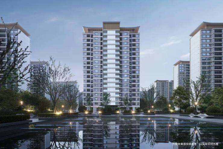 在建筑风格上,整个园区建筑设计以“山”为主题,利用东西向天际线的变化与南北向的高低错落勾勒出一幅经典“江南山水”画卷。立面提炼宋式精工美学,打造隐奢大宅气质,顶部采用东方建筑“飞檐”造型,形成极具东方气韵的建筑外貌,呈现现代东方极简美学。