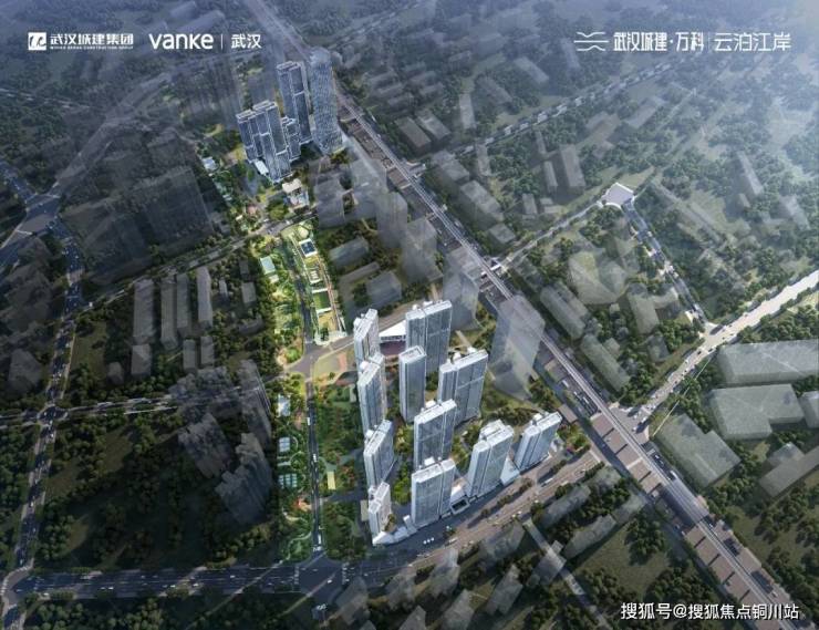 武汉城建·万科云泊江岸位于二七板块距轻轨线丹水池站约100米,是一座总建面约34.3万平方米的公园大盘。