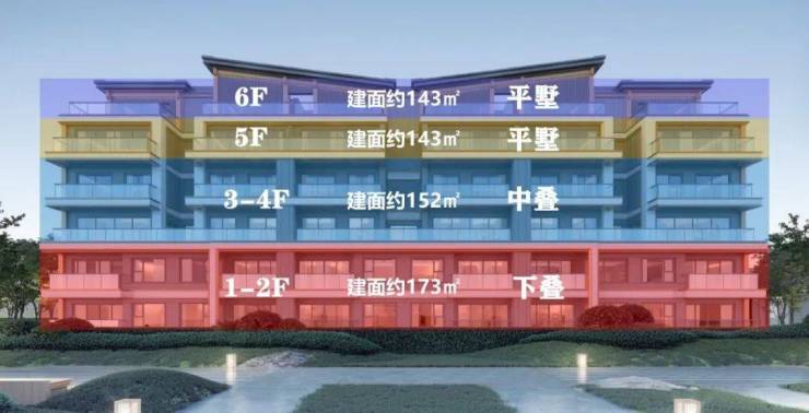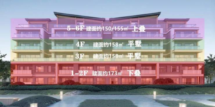 ❖第四种6F墅:靠近社区外围的下中叠各两层,5F和6F做成平墅,全层都能享受到别墅般的生活。