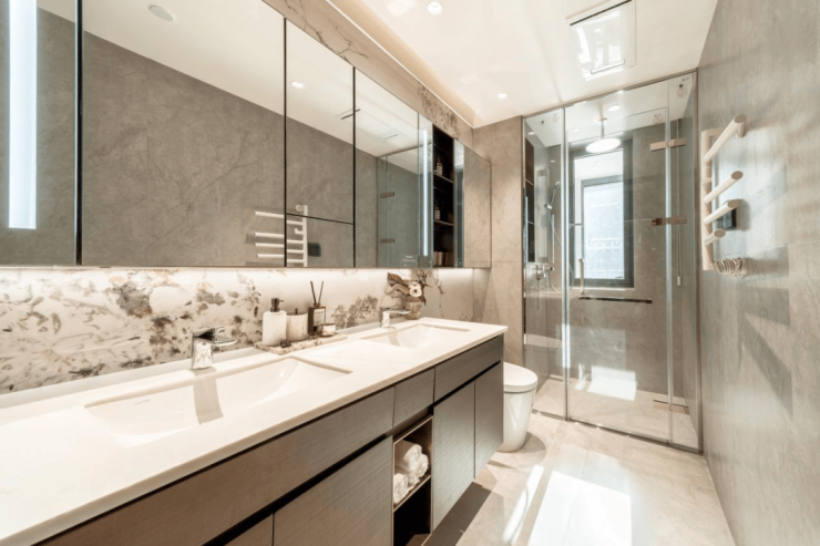 南向四房面宽高达约14.6m,格局通透,全景全明的大幅玻璃融合室内外景观,带来强烈视觉冲击,让每一个视角都堪比电影级风景大片!无论在客厅还是卧室都能享受3D环绕式观景体验,中心万象的天际线景致皆在眼前,直接将巨幕全景奢宅的等级提升到顶级!