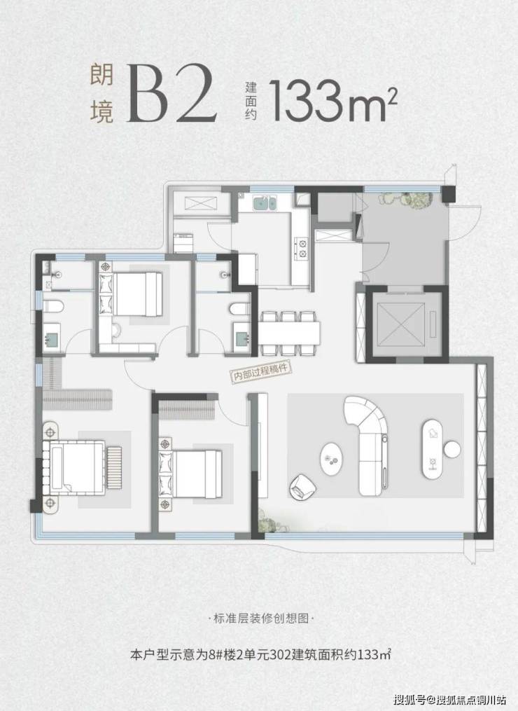 邦泰·臻境主推建面约116㎡三房/133㎡四房;约139㎡稀缺四代户型使用率高达132%。