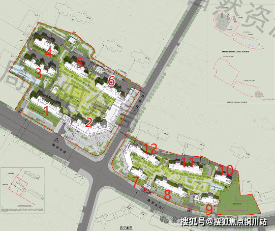 由两个地块组成,每个地块各有6栋住宅。其中,西边地块中1、2、4、5、6号楼为29-34层的高层住宅,3号楼是11层小高层;东边地块中7号楼为5层洋房,12号楼为6层洋房,8-11号楼为10-11层的洋房住宅。