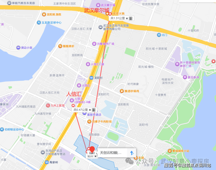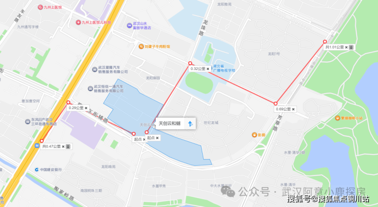天创云和樾位于汉阳区隆祥东街与龙珠路交叉口以北,北边距离二环线约1.3公里。