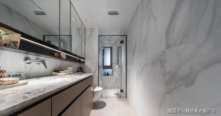 餐厅定制餐边柜;主卫为女主人加配的美妆冰箱;主客卫的定制抽纸盒,阳台提前安好的电动晾衣架、厨房及卫生间的壁龛……每一处都十足的从实用出发,打造既美观又实用的居住空间。