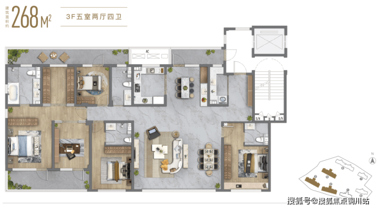 当然,如您喜欢上叠加别墅,六七层可供选择,建面273㎡,侧面带约42㎡的露台。
