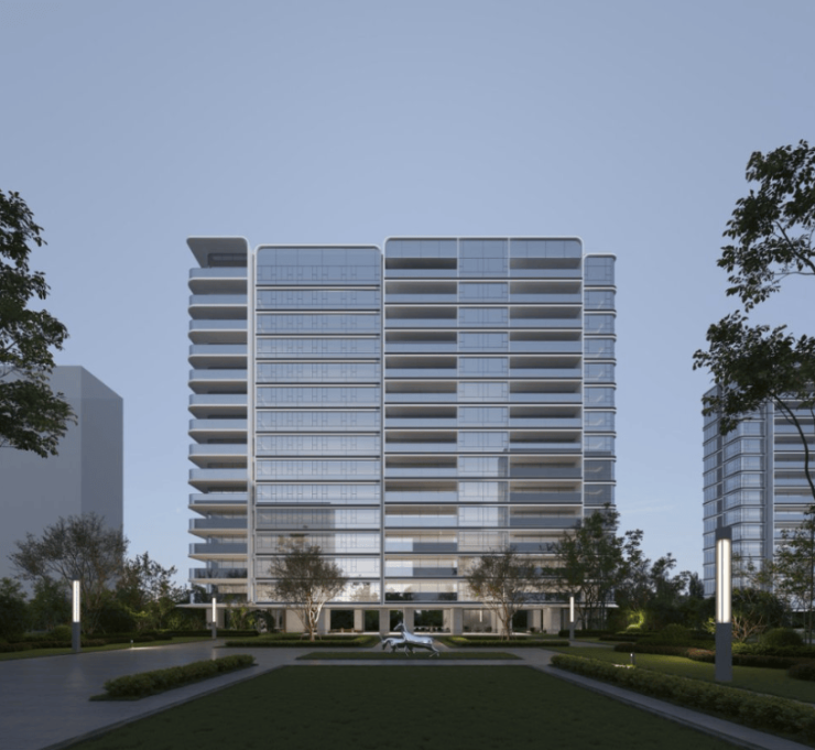观景平墅则采用银色金属线条与大面积玻璃,利用典雅的弧形曲线,去融化色调上的冷感,增加辨识度,让建筑成为城市天际线里亮眼的存在。