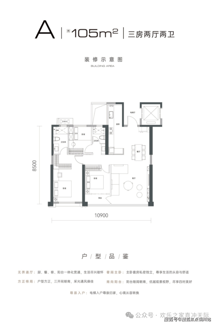 3#楼中间户105㎡(三房两厅两卫)装修户型图,如下: