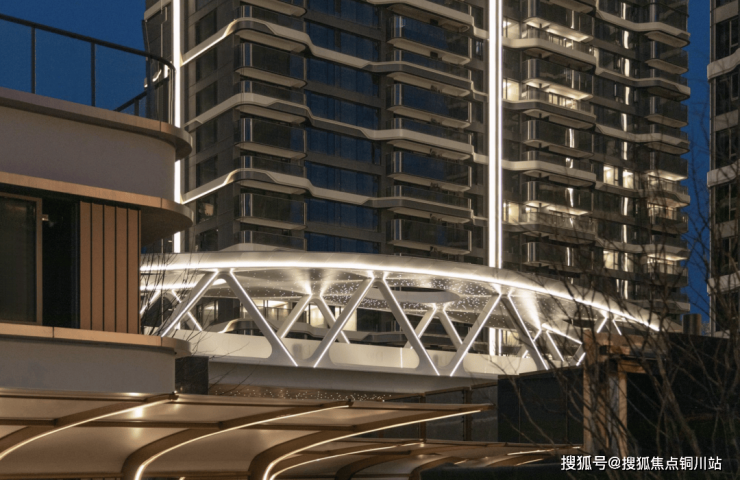 挑高4.5米的风雨连廊也在成为归家的一部分,不仅串联着楼体,项目整体园区也因为这个元素被完整串联在一起
