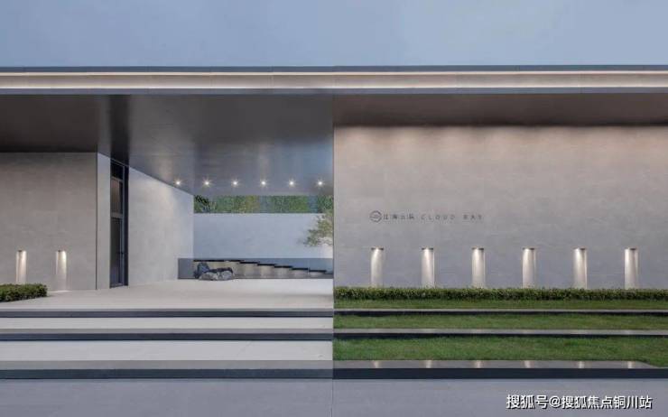 门廊悬空形成灰空间,灰色玻璃栏杆延伸横展,将迎宾场景拉展成超长的横框画卷。礁岸巨石与点景红梅,很好的提升了迎宾空间艺术氛围,演映生活的仪式感和艺术感。