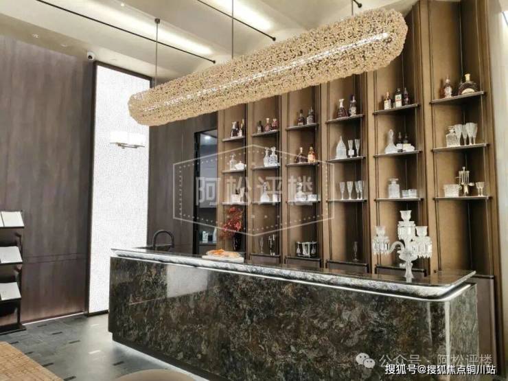 目前,项目会所展示出了私宴厅,不仅有漂亮的沙发座椅、圆桌等,还有一个小型吧台。
