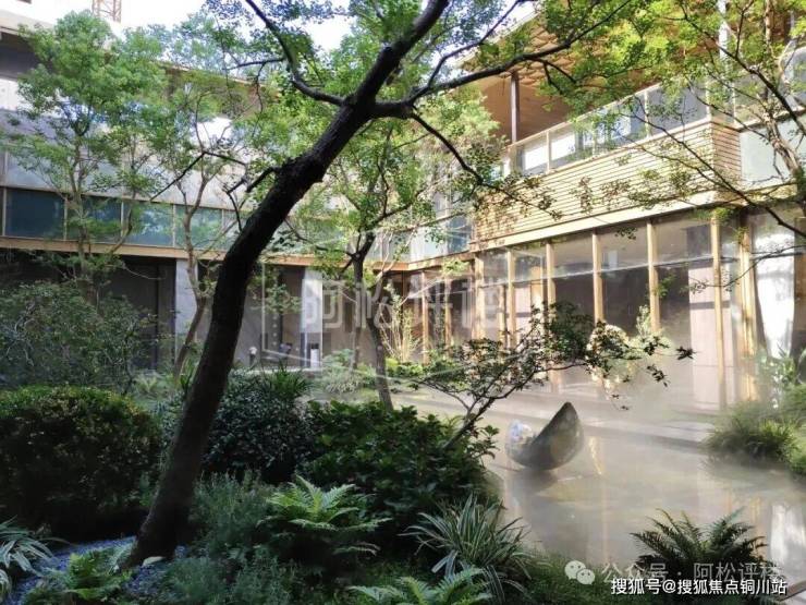 在负一楼连廊处,看下沉庭院,水景搭配水雾,既起到降温、增湿的作用,在视觉上也是一种享受。
