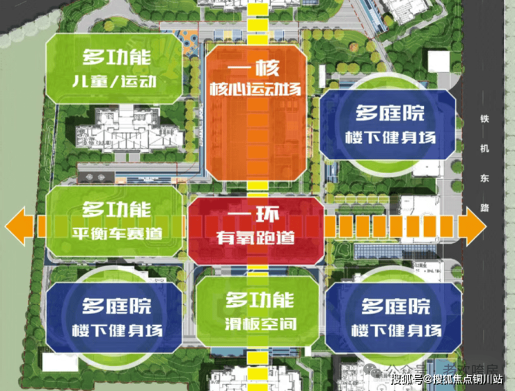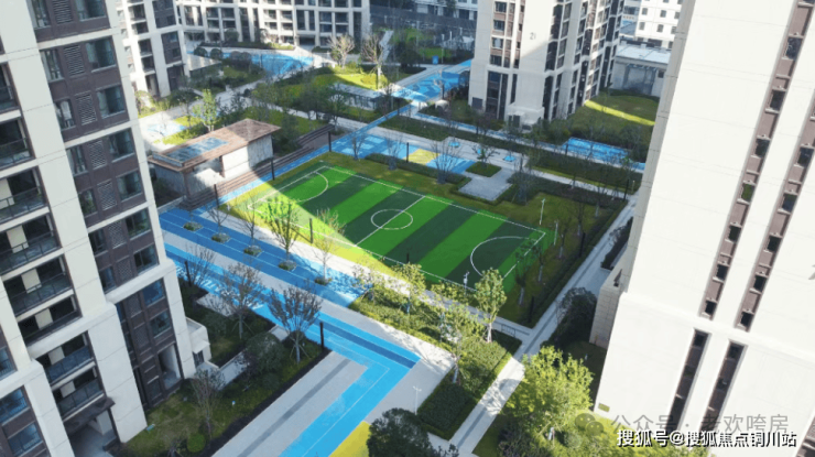 项目打造运动健康型社区,设计了“一核、一环、多功能、多庭院”的社区运动空间布局。从交付兑现情况来看,外立面、公区品质中规中矩,各种运动场地铺设到位。