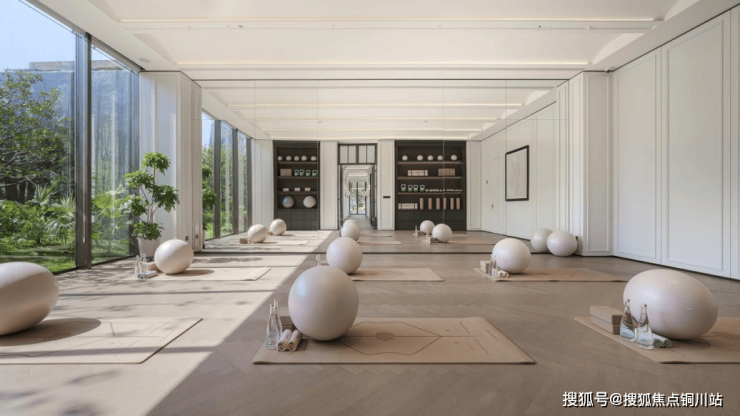 延续一期“有氧律动、逐梦空间、会客雅集”泛会所理念,二期首层架空设计,全景落地窗引景入室,融合太太的会客厅、运动元气场,儿童成长盒子等多功能于一体,实现与生活的无界对话,构筑全龄开放、自然、品质、关怀的的社区场域,重新定义塔尖圈层的社交方式。