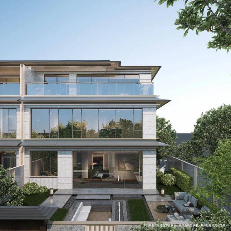 有别于传统别墅真石漆外立面设计,金茂璞印梅溪别墅立面紧跟潮流,极具现代风。