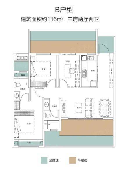 建面约116㎡的N+1户型,空间使用率高达102%。是目前整个汉口中心区,唯一可实现负公摊的户型。