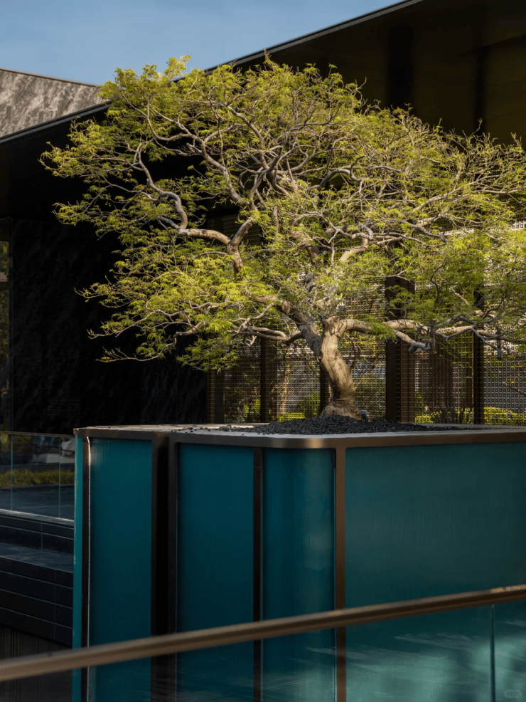 全长约158米的风雨连廊,巧妙地贯穿整个社区,营造了一种尊贵的无风雨归家景观享受。这个连廊空间体系不仅拓展了核心功能区域,更与周边庭院有机融合。连廊之中,精心布置的帷幔艺术虚廊,巧妙地将实与虚相融,打造出独特的穿行体验。无论晴雨,皆可在此悠然欣赏风景,享受从容的生活时光。