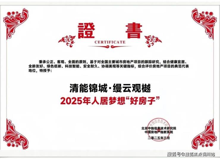 坚持以产品力说话,是我们最足的信心与底气。清能锦城·缦云观樾始终以国企标准造好房,3月,2025中国房地产百强企业研究成果发布会暨第二十二届中国房地产百强企业家论坛在北京召开,项目成功荣获“2025人居梦想好房子”,彰显标杆影响力。