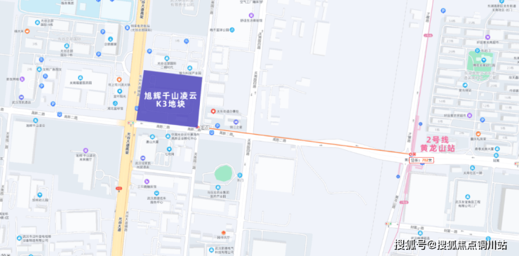 旭辉千山凌云K3地块与地铁2号线黄龙山站距离示意图