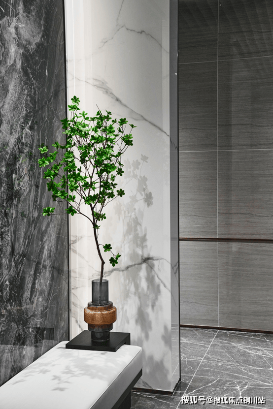 步入叠墅入户大厅,媲美星级酒店的华美大气,彰显出中信泰富·玖著对建筑品质的严苛,岩板、大理石连纹背景墙、高档奢华顶灯、地砖通铺设计……每一个细节都能看见精益求精的匠心。