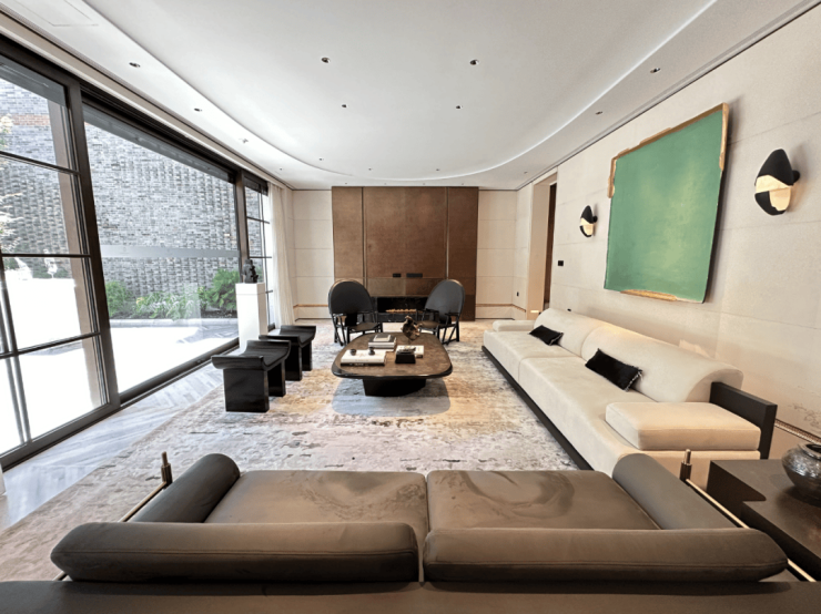 目前,泳池空间、会客空间等已经实景呈现: